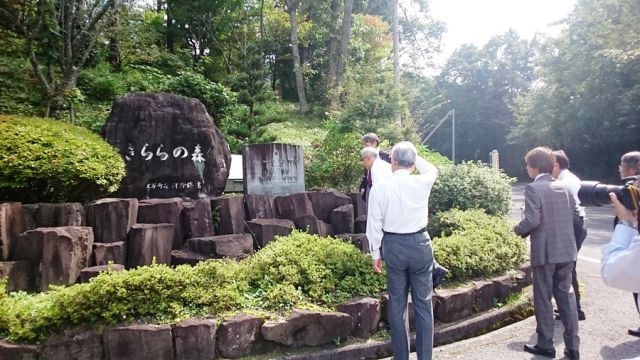 会場入りする前に、久万ライオンズクラブが整備をされている「きららの森」を見学しました。大会前のお忙しいときに連絡を入れたにもかかわらず、久万ライオンズクラブの小倉さんが、わざわざ私たちを出迎え「きららの森」を案内してくださいました。この森は、20年前の子供たちが中心になって木を植え、その後ずっと草刈りをしたり花を植えたりしながら手入れをしていらっしゃるのだそうです。