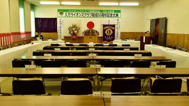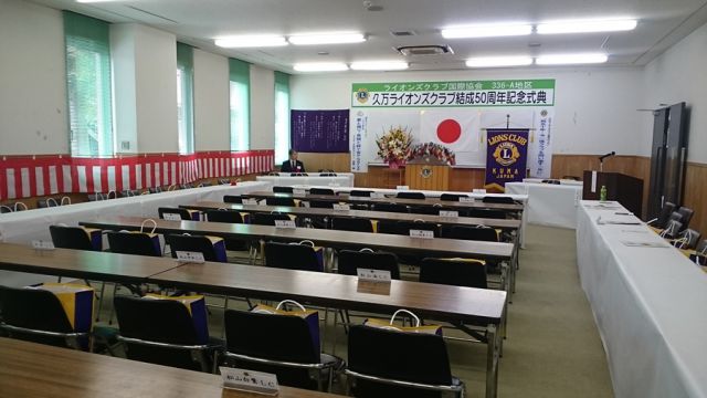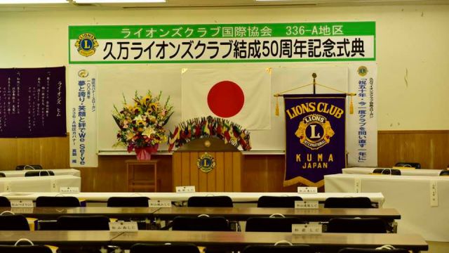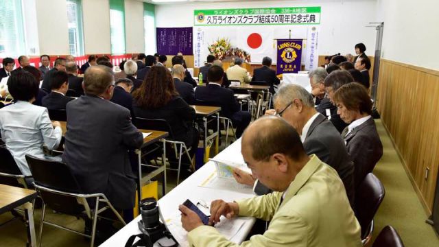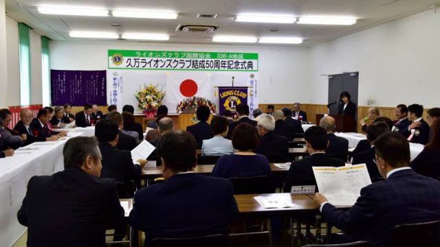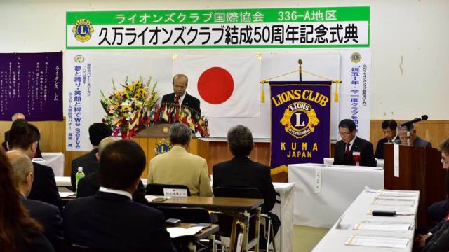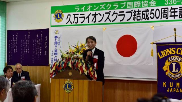 いよいよ、久万ライオンズクラブ50周年記念式典。当、尾道向島ライオンズクラブは姉妹クラブとして紹介していただき、濱本会長が祝辞を述べました。(祝辞の中で、姉妹クラブとなったいきさつを改めて披露。この話を知る人も少なくなり、今後のためにも記録しておく必要がありそうです。)