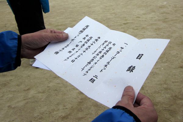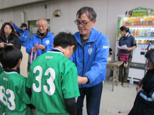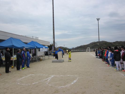 尾道市向島運動公園(グランド)の2つのコートで朝 9:00~ 2試合同時にキックオフ。10:30~ 開会式を行い、14:30~ 決勝 & 3位決定戦・・・全部で16試合を行い、15:20~ 閉会式というスケジュールでした。(試合時間は30分。ハーフタイム 5分)