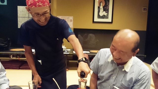 長曽我部さんから、二五さんに、誕生日祝いのお酒のサービスがありました。